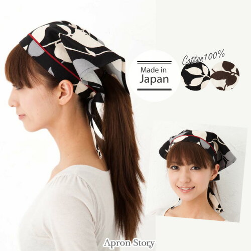 【メール便対応可】【あす楽】【日本製】三角巾(リーフ) 大人用 エプロン Mサイズ Lサイズ お揃い セット 北欧 かわいい おしゃれ 綿100% 簡単 料理教室 バンダナ プレゼント ギフト 母の日 【N】【Y】